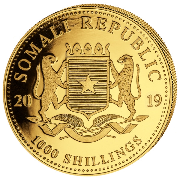 索馬里亞非洲象象 1 盎司金幣(Somalia Elephant 1oz Gold Coin BU)於 2010 年首次亮相,憑藉著2004 年首次鑄造索馬里亞非洲象銀幣在全世界銷售經驗。該系列的設計每年都會有不同圖案,而這些圖案都是描繪非洲象在自然環境中的生活樣貌。 -